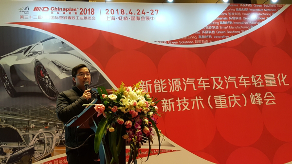“CHINAPLAS 2018 国际橡塑展”主办方雅式展览服务有限公司紧跟行业趋势,携手重庆汽车摩托车行业协会,于2018年1月30日在重庆举办“新能源汽车及汽车轻量化新材料新技术(重庆)峰会”,此次活动获得了重庆市经济和信息委员会高度重视,并且也获得了重庆金康新能源汽车设计院有限公司的大力支持。活动特邀国际知名展商奔赴中国汽车之都的重庆,与当地汽车行业专业人士实地探讨行业热点话题和应用解决方案,为100多位整车及汽配的生产企业代表及新闻界人士抢先预告展会的亮点技术及活动。